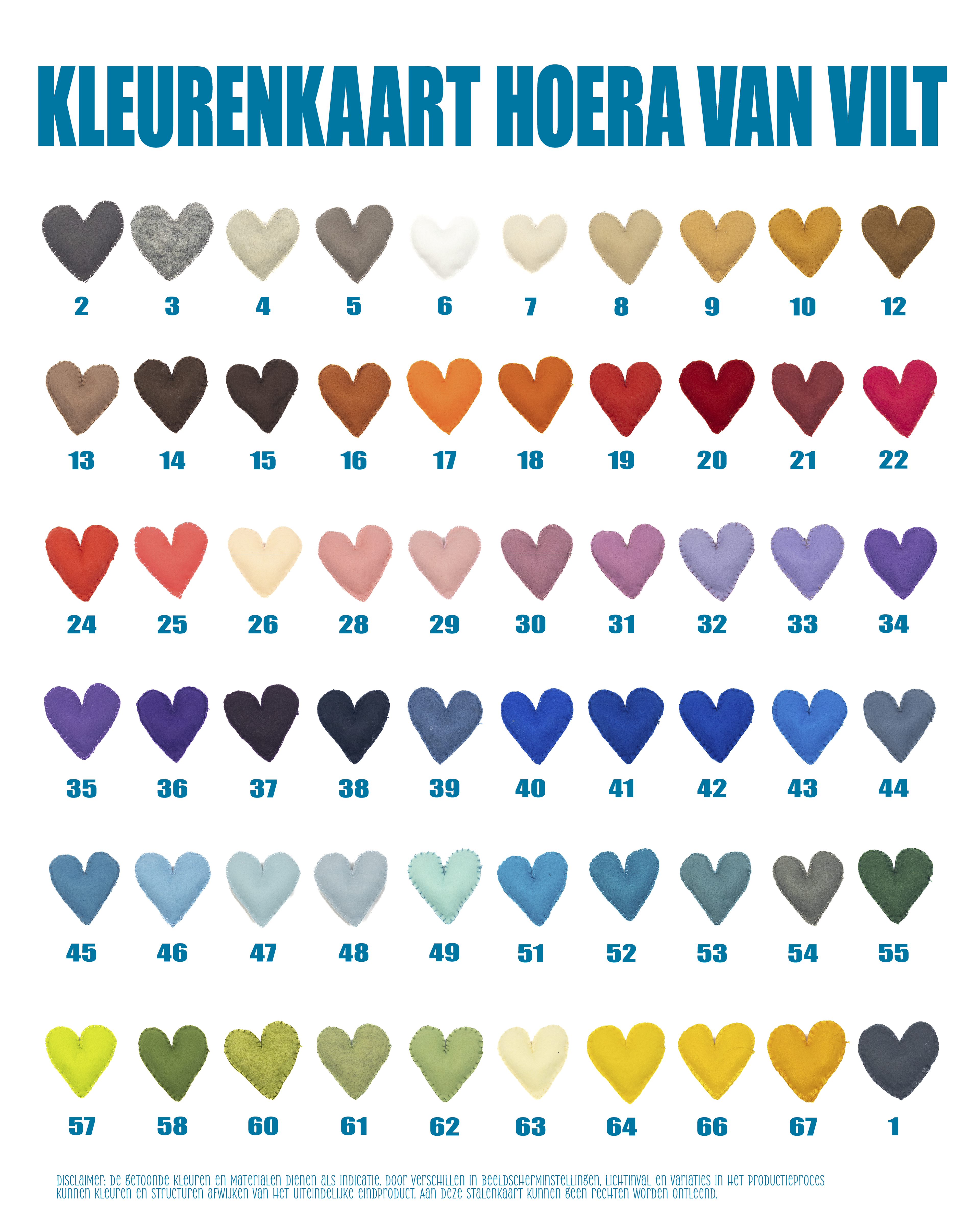Let op: kleuren kunnen licht afwijken door scherminstellingen en variaties in het materiaal. Gebruik deze kaart als richtlijn bij het samenstellen van jouw perfecte slinger.